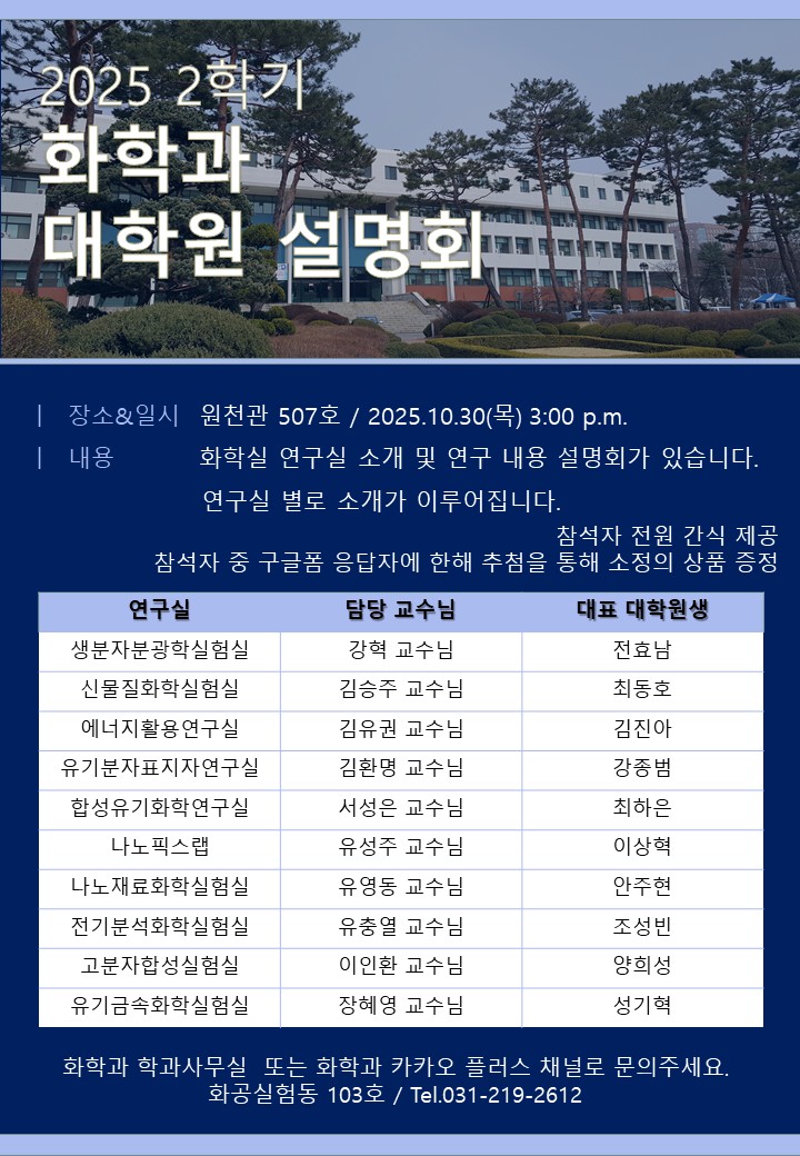 각 연구실 별로 5분씩 연구실 소개가 이루어집니다.