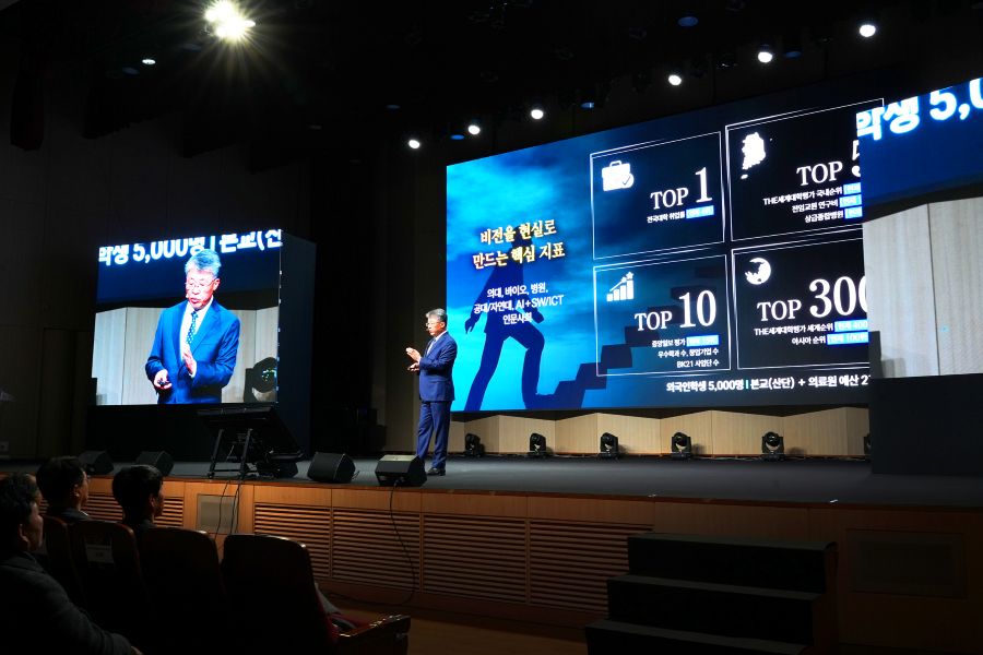 최 총장은 발표를 마무리하며 “비전은 세우는 것보다 실천이 중요하다”며 구성원들의 적극적인 참여와 협력을 당부했다. 그는 교수와 학생, 직원, 재단과 동문이 한마음으로 힘을 모을 때 비전이 실현될 수 있다고 강조했다.