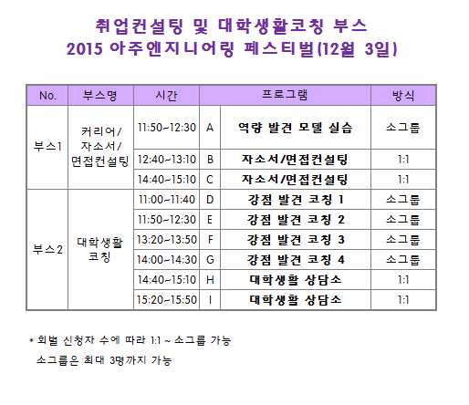 | 1203 | 행사 | 학생지원팀 | 2015-11-27 | ||
