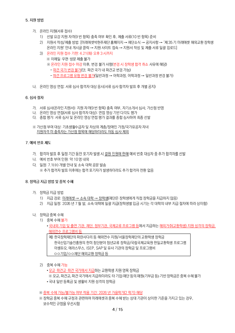 [장학] [교외장학] 제35기 미래에셋 해외교환 장학생 선발 공고 (2026년 가을학기 파견)