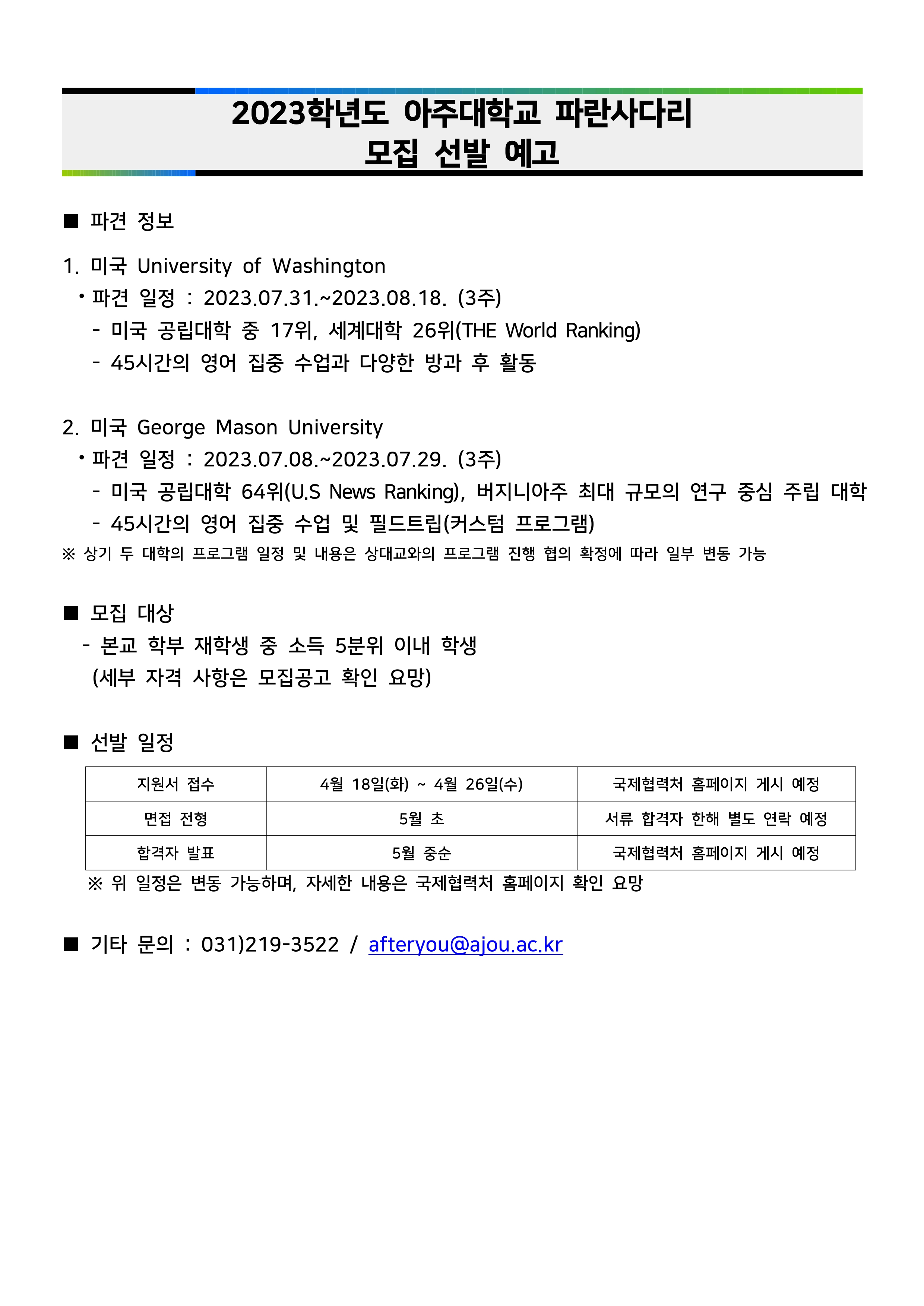 | 845 | Outgoing | 국제교류팀 | 2023-04-27 | ||