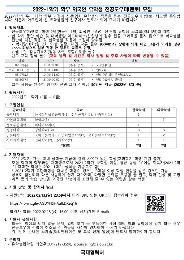 | 696 | Student Life | 유학생입학팀 | 2022-02-18 | ||