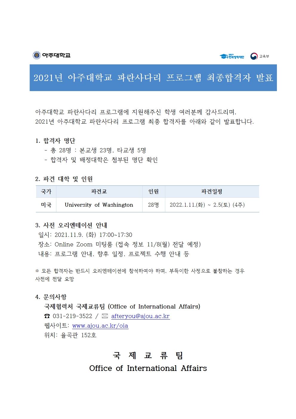 | 648 | Outgoing | 국제교류팀 | 2021-11-07 |