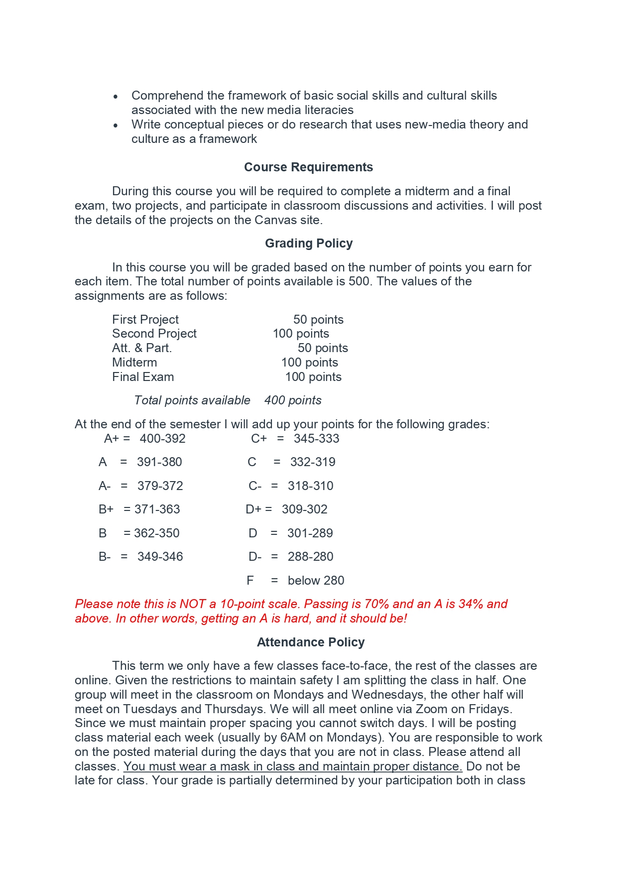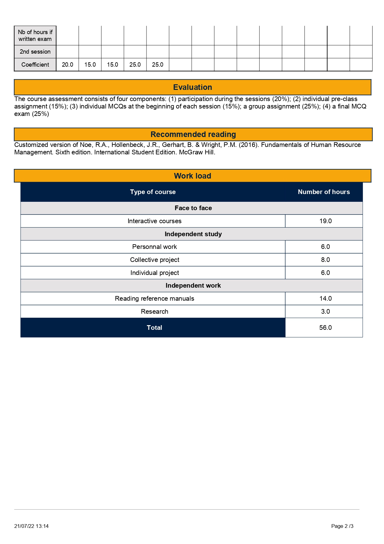 과목별 Syllabus는 과목의 학점, 이수 시간이 정확히 기재되어 있어야 합니다.